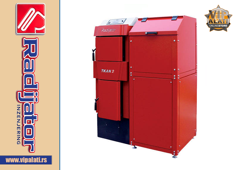 S druge strane zahtevi tržišta su uvek okrenuti ka što većoj univerzalnosti goriva, tako da je kotlove serije TKAN moguće ložiti i sa čvrstim gorivima (drvetom, ugljem) i tada je loženje ručno. Samo sagorevanje se u ovoj situaciji odvija pod prinudnom promajom ventilatora. Kotlovi na pelet TKAN 2 40-50 kW Radijator Inženjering su u ovim uslovima efikasniji nego njegovi prethodnici koji funkcionišu po principu slobodne promaje. Stepen korisnosti na pelet je preko 90%.