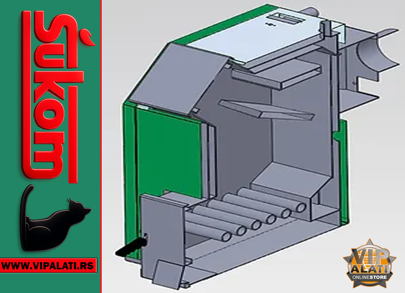 Kotlovi tipa Šukoplam K raspona snage 20-50kW namenjeni su za sagorevanje čvrstog komadnog goriva (drvo, ugalj) koji se ručno ubacuje kroz prostrana kosa gornja vrata na kotlu.