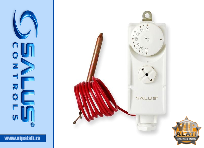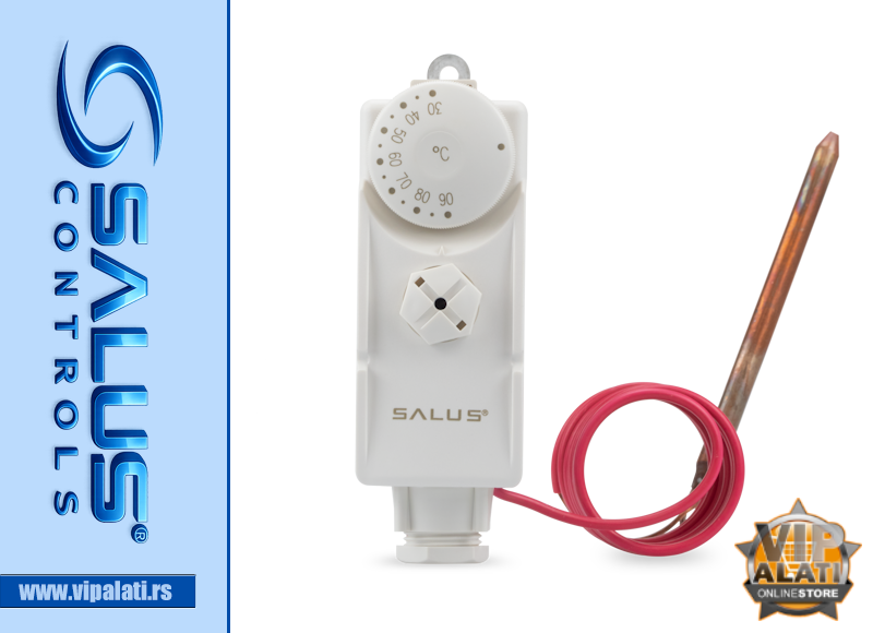 Mehanički termostat za zidnu montažu, opremljen sa za temperaturnom sondom (kapilarnom). Poseduje dugme pomoću kojeg lako možete menjati i kontrolisati temperaturu u krugu centralnog grejanja ili u krugu tople vode.