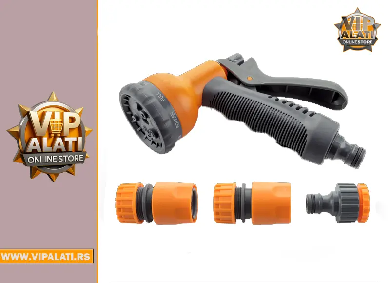 Praktičan pištolj za zalivanje sa 8 režima prskanja i ergonomskom ručkom. Dolazi u setu sa adapterima 1/2 i brzim priključcima za jednostavno povezivanje.